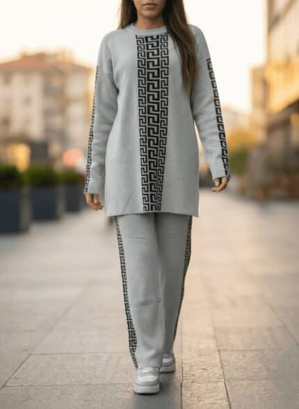 White Rose Printed Style 2-Pcs Winter Tracksuit For Her