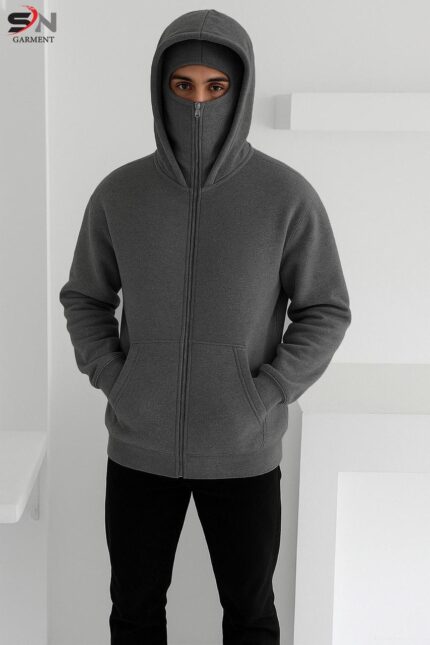 Unisex Balaclava Ninja Zipper Hoodie Jacket Grey