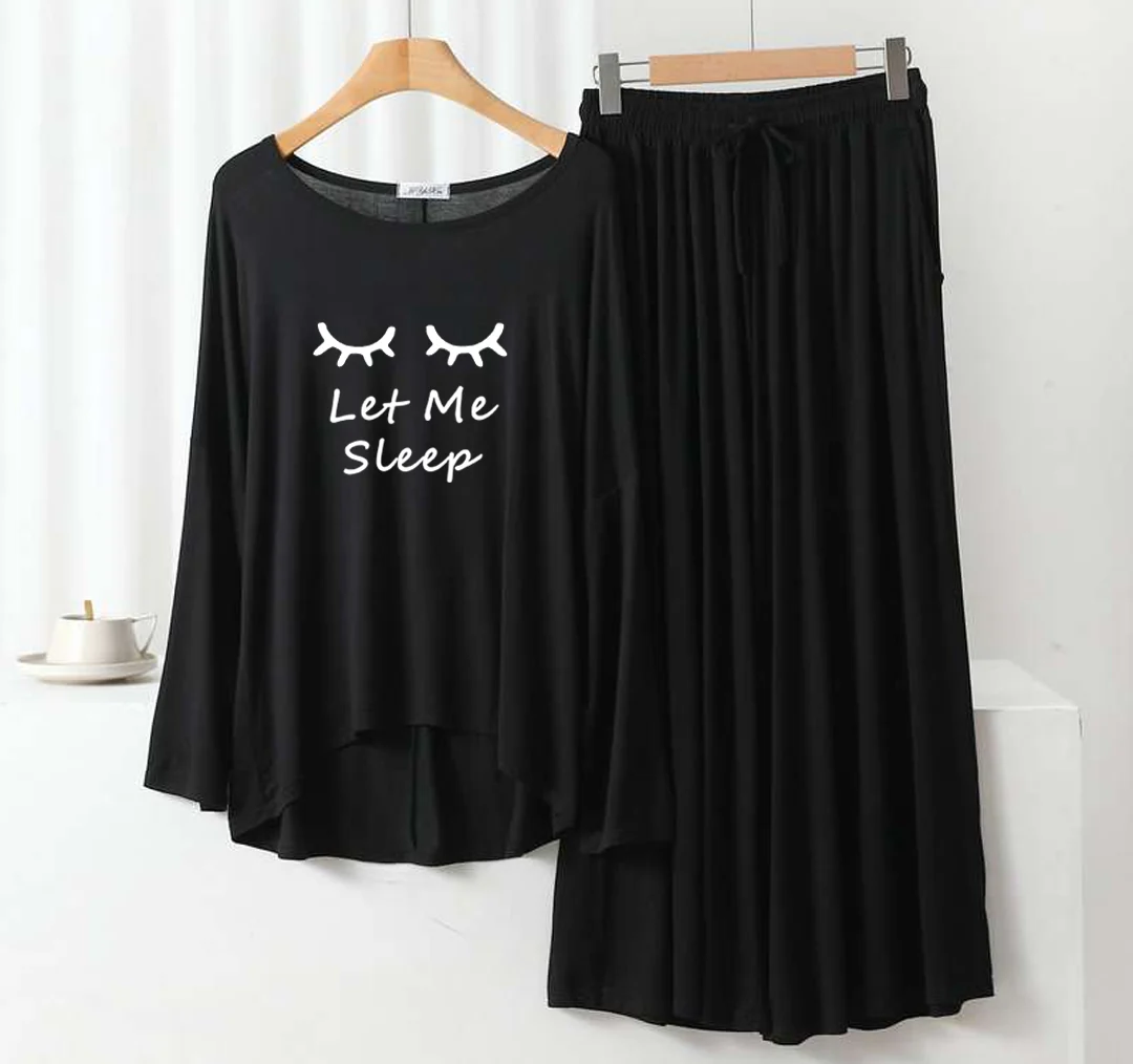 Be the first to review “Deep Black let me sleep Round Neck Plazzo PJ Set” Cancel reply