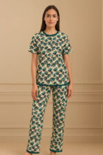 FLORA PAINTED LEAF PRINTED SHIRT AND TROUSER
